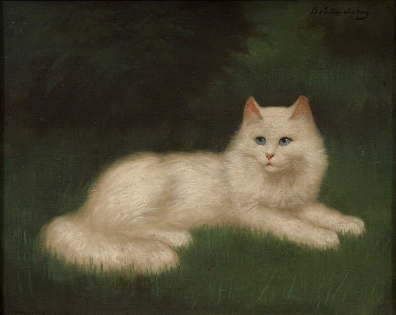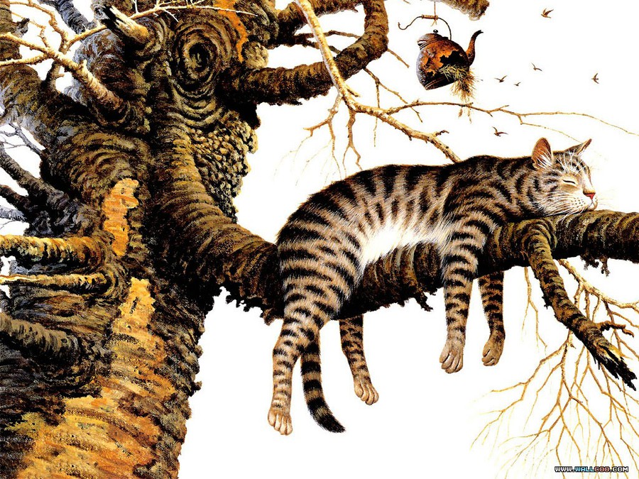 Werke seiner Katzenbildersammlung sind beispielsweise „Frederick the Literate“, eine getigerte Tabby-Katze beim Mittagsschlaf auf einem Bücherregal.